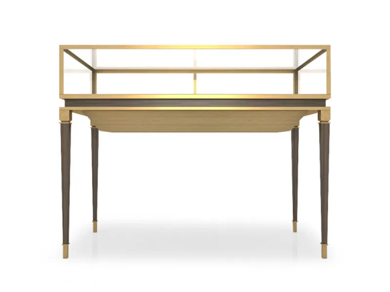 Стильный дизайн: Вся конструкция представляет собой классическую стойку с простыми и аккуратными линиями; верхняя стеклянная витрина естественным образом соединена с нижним выдвижным шкафом, который выполняет функции как витрины, так и хранения и подходит для планировки помещений современных ювелирных магазинов.