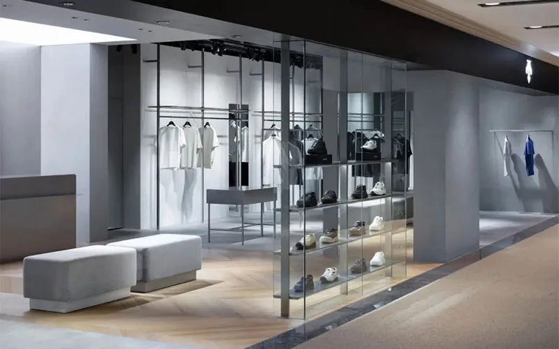 Строгое сочетание нержавеющей стали, светящихся материалов и стекла подрывает традиционную теплую цветовую гамму, ассоциирующуюся с торговыми площадями спортивных товаров. Текстура стен намеренно имитирует тонкие бороздки свежеподготовленных лыжных трасс, а материалы пола сочетают в себе противоскользящие свойства и визуальное расширение пространства — каждое применение материала одновременно отвечает функциональным требованиям и эстетическим запросам. Согласно Daily Commercial Design Observation, такая логика выбора материалов, ставящая функциональность на первое место, становится эволюционным направлением для профессиональных торговых площадей спортивных товаров.