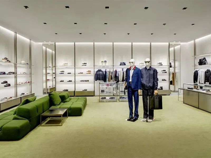 При входе в магазин сразу же бросается в глаза фасад, представляющий собой виртуозное сочетание матовой нержавеющей стали и мрамора. Сверкая на солнце, он возвышается под горой Мон-Руаяль, приветствуя каждого посетителя своим неотразимым видом.Это больше, чем просто фасад; он воплощает приверженность Gucci качеству и инновациям, служа осязаемым выражением духа бренда.